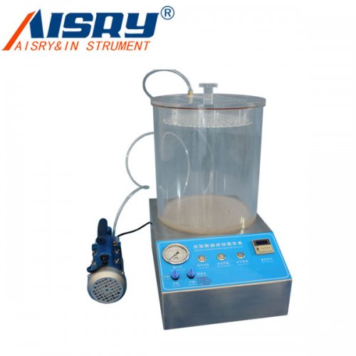 通過(guò)對(duì)真空室抽真空,使浸在水中的試樣產(chǎn)生內(nèi)外壓差,觀測(cè)試樣內(nèi)氣體外逸情況,以此判定試樣的密封性能;通過(guò)對(duì)真空室抽真空,使試樣產(chǎn)生內(nèi)外壓差,觀測(cè)試樣膨脹及釋放真空后試樣形狀恢復(fù)情況,以此判定試樣的密封性能。