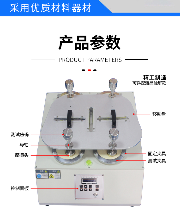 1、工位數(shù)8位計數(shù)顯示 2、預(yù)計計數(shù):0~999999次 3、累計計數(shù):0~999999次 4、動程范圍:24±0.5mm、60.5±0.5mm 5、夾持器:200g 6、壓錘質(zhì)量:2385±10g 7、夾持器與磨臺相對運動速度:50-2r/min裝樣 8、耗材:羊毛氈4張,測試棉布4張 9、重量:100kg 10、電源:Ac220V 50Hz 11、家具裝飾品試樣重錘:594g 12、不銹鋼蝶片:260g