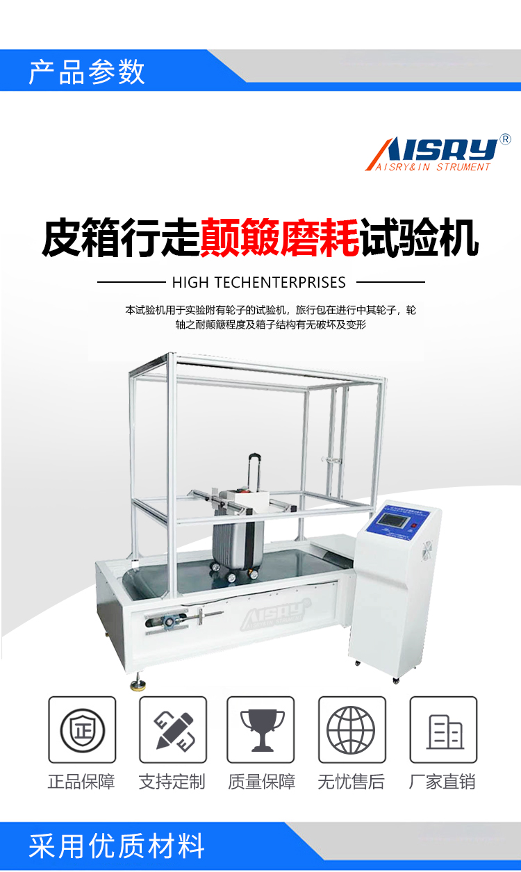 產(chǎn)品應(yīng)用范圍:用于附有輪子的旅行箱,旅行包行進(jìn)間試驗(yàn),可測(cè)得輪子材料的耐磨性及箱子整體結(jié)構(gòu)有無破壞情形