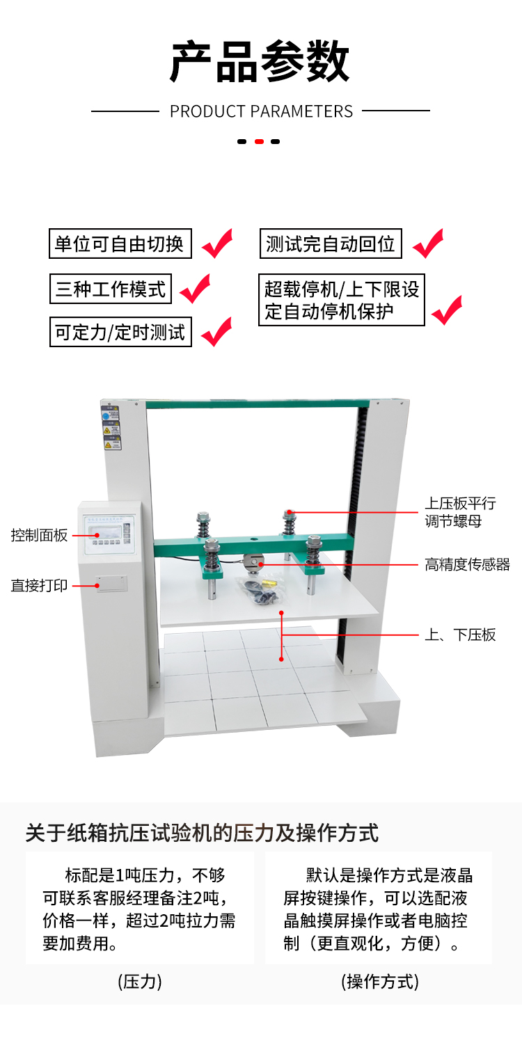 產(chǎn)品應(yīng)用范圍:適用于各類(lèi)瓦楞紙箱的抗壓強(qiáng)度試驗(yàn)、達(dá)標(biāo)試驗(yàn)和堆碼強(qiáng)度試驗(yàn)